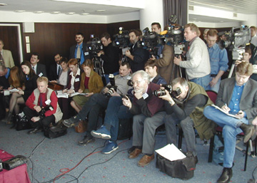 В свою очередь, Б.Немцов скептически отнесся к обращениям к президенту, отметив, что большое значение здесь будет иметь общественное мнение. Кроме того, Б.Немцов считает, что для того, чтобы отстоять независимость НТВ, есть юридические возможности. При переходе спорных акций "Газпрому" будет нарушен антимонопольный закон РФ, и поэтому для такой операции должно быть получено разрешение министерства по антимонопольной политике, которое "может и должно настоять" на том, чтобы часть акций из более чем 50-процентного пакета была продана. "И это будет в рамках российского законодательства", - подчеркнул Б.Немцов. Оба участника пресс-конференции сошлись на том, что "коллектив НТВ - это главный капитал телекомпании". "Коллектив НТВ является творчески самым сильным в стране, и далеко не каждая европейская страна имеет телеканал такого уровня. Поэтому люди, работающие в нем, имеют право, сберегая собственную репутацию, не работать с теми, чью репутацию они для себя не принимают", - заявил Г.Явлинский. "Редакционная политика НТВ должна остаться за коллективом журналистов и Евгением Киселевым, а хозяйственная деятельность - за "Газпромом", - добавил Б.Немцов. Кроме того, участники пресс-конференции сообщили, что в начале лета обсудят законопроект о телевидении, который сейчас готовит фракция "ЯБЛОКО". По словам Г.Явлинского, прежде всего он коснется того, "как лицензируются телевизионные частоты, как работает механизм их распределения". "Надо стремиться к тому, чтобы в будущем в стране не было телеканалов, которые бы напрямую контролировались государством. Должно быть создано подлинное общественное телевидение", - сказал Г.Явлинский. (По сообщениям Интерфакса) Скачать пресс-релиз в формате .RTF См. также: Обращение фракции "ЯБЛОКО" президенту РФ "Об обеспечении конституционных прав граждан на судебную защиту" (в связи с ситуацией вокруг НТВ) 6 апреля 2001 г. Раздел "Ситуация вокруг НТВ"