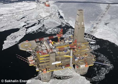 Противоположный разработке Штокмановского пример - успешная добыча газа с шельфа на ледостойкой платоформе "Лунская-А", построенной в рамках проекта СРП "Сахалин-2".