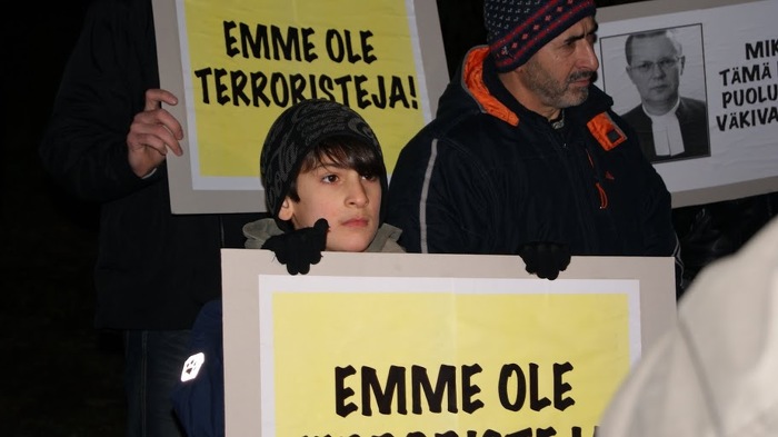 Когда я находился в Финляндии, финские коллеги предложили съездить под Хельсинки в город Расеборг, где должен был состояться санкционированный пикет против высказываний пастора Юхо Молари. Мы приехали к церкви за несколько минут до начала службы. Встали в нескольких метрах от территории церкви, огороженной низким каменным ограждением. Люди достали плакаты с надписями: «Мы не террористы», «Почему этот пастор преследует нас?», и «Группа ненависти Молари преследует беженцев».