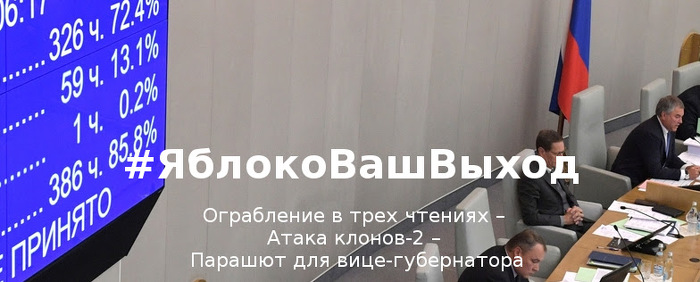 В момент голосования у здания парламента очередную акцию протеста провели Сергей Митрохин и активисты «Яблока». И, разумеется, мы продолжим борьбу за отмену грабительского законопроекта, что в российской реальности означает смену власти и политики в целом.