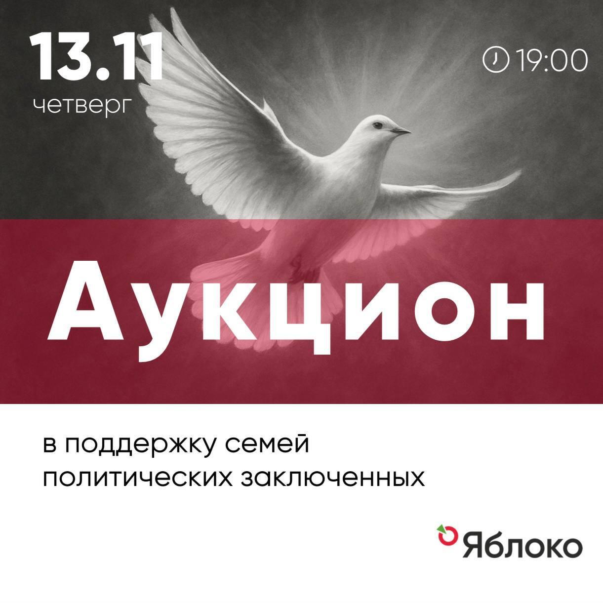 13 ноября «Яблоко» проведет новый благотворительный аукцион в поддержку семей политических заключенных. Акция станет седьмой по счёту, а собранные средства по традиции пойдут на помощь родственникам и адвокатам узников совести. Аукцион пройдет одновременно на двух площадках – онлайн и очно, в офисе «Яблока» в Москве.