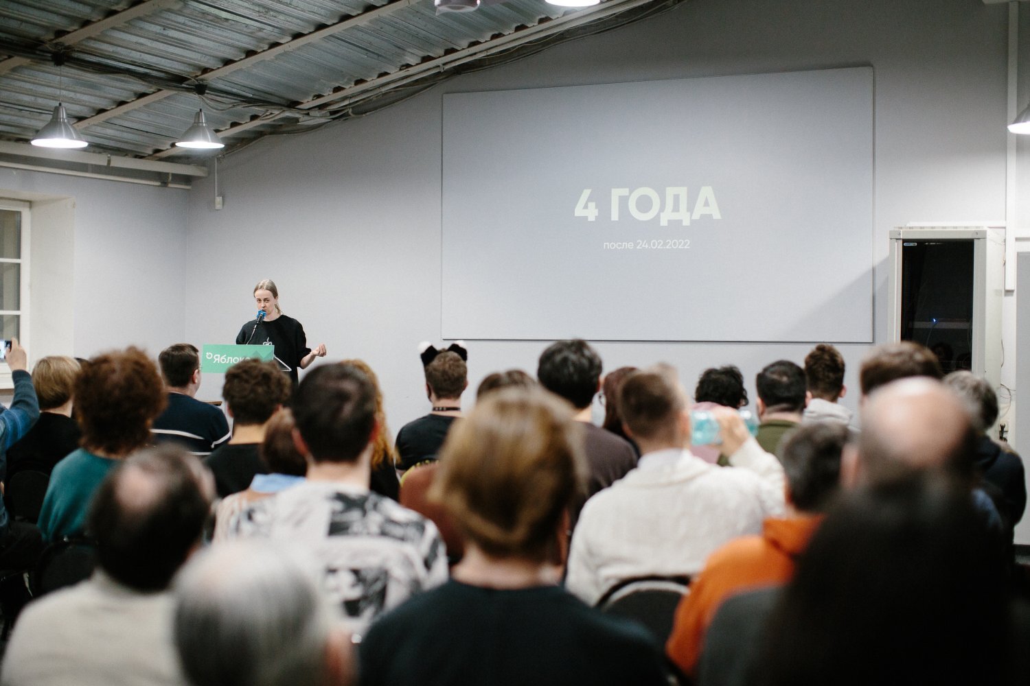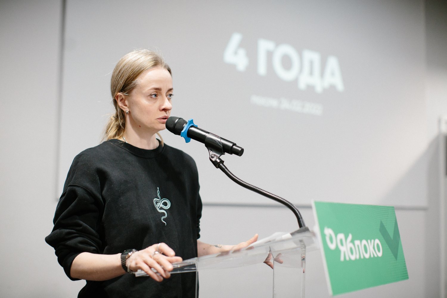 24 февраля 2026 года в офисе «Яблока» в Москве прошла встреча единомышленников – «4 года после 24.02.2022». Все желающие могли прийти в офис партии, чтобы не оставаться одним в годовщину начала специальной военной операции. В рамках встречи был показан фильм «Одна» режиссёра-документалиста «Новой газеты» Анны Артемьевой.