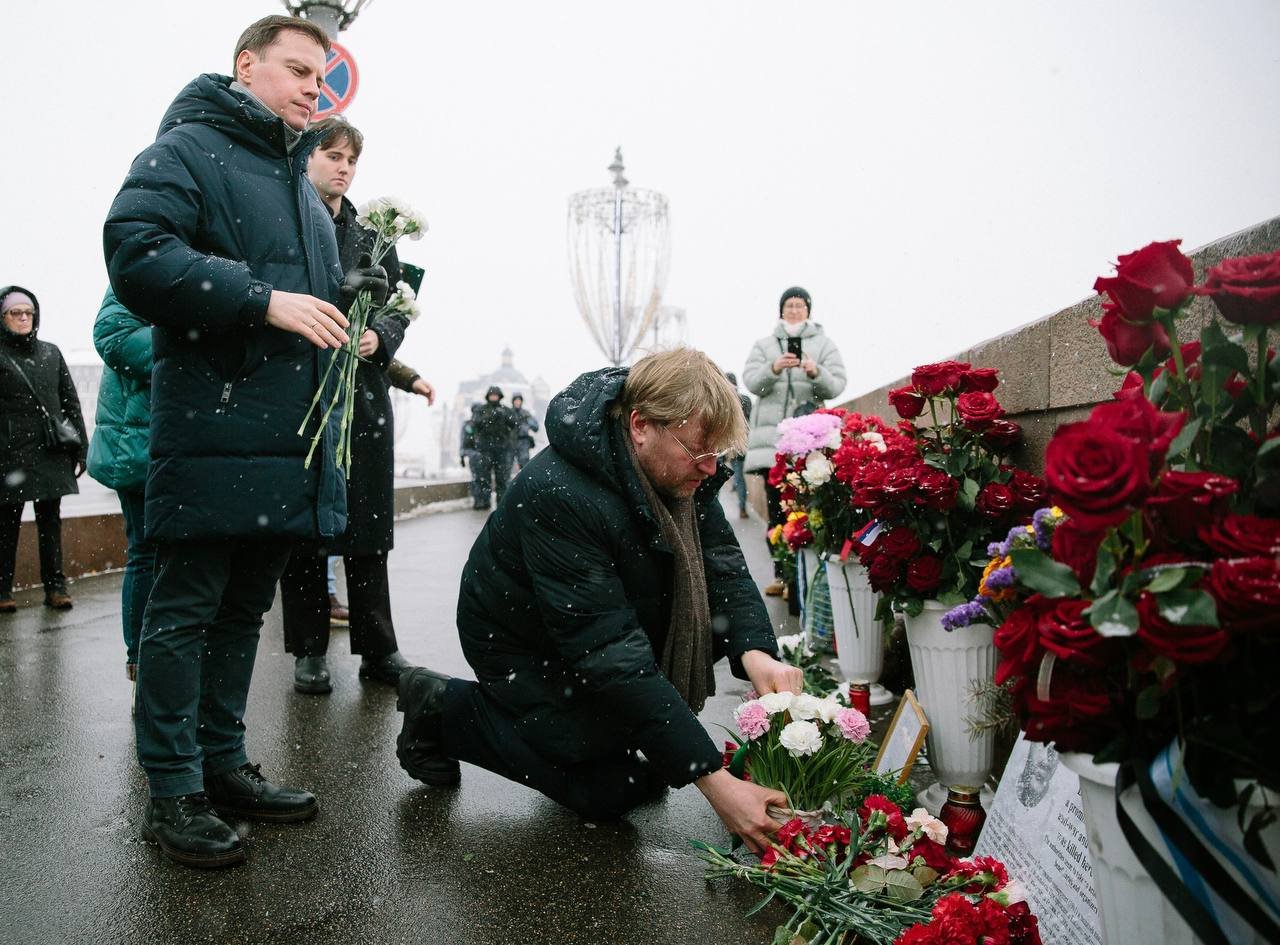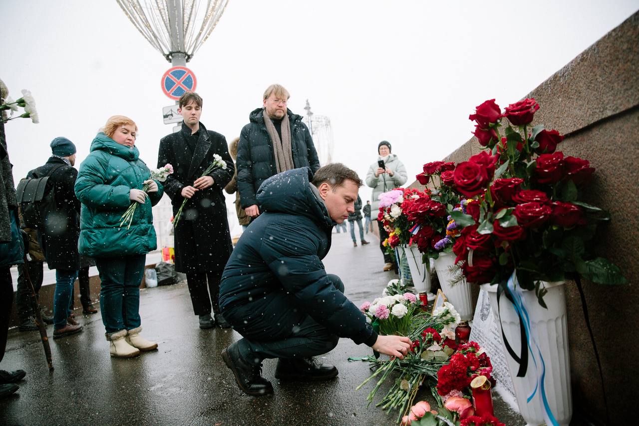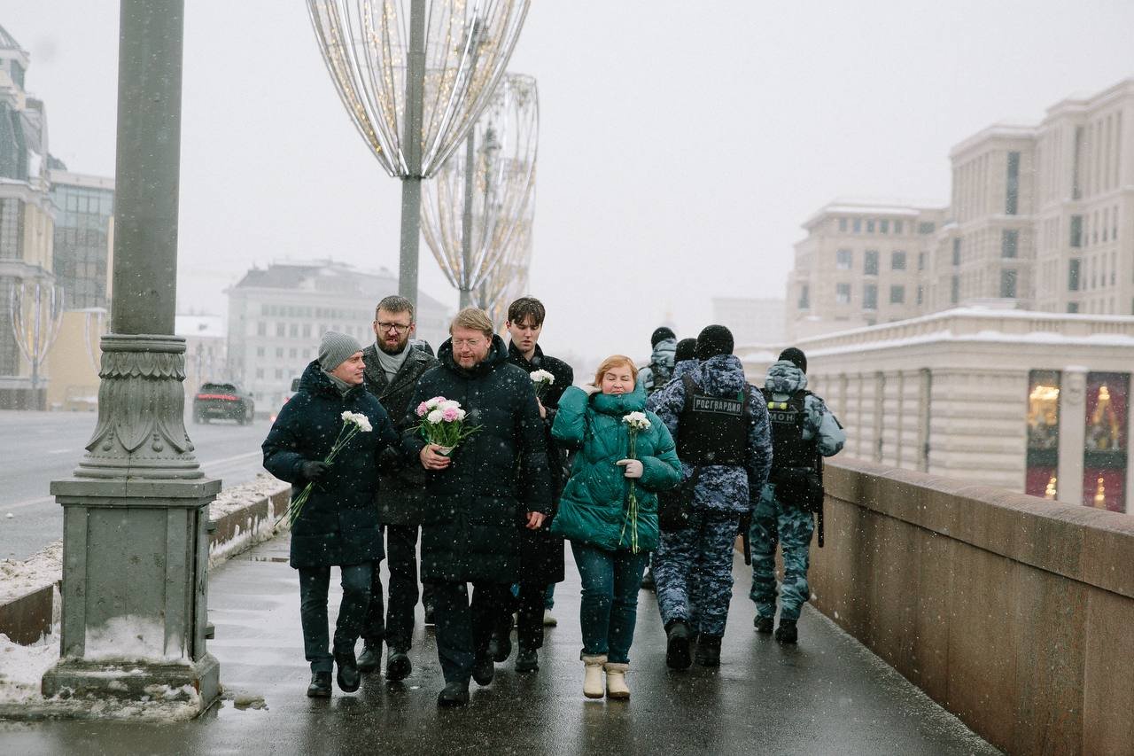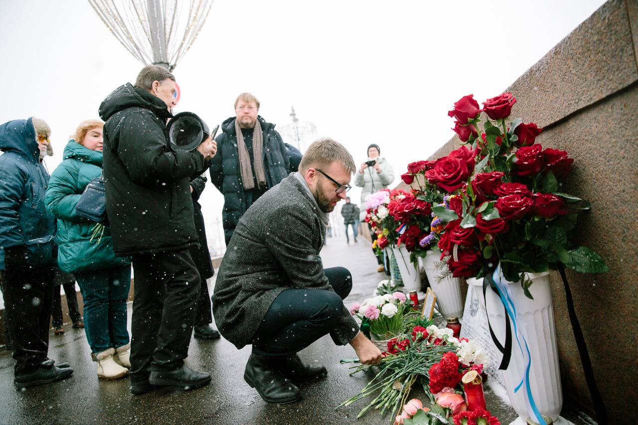 Сегодня, в одиннадцатую годовщину убийства политика Бориса Немцова, председатель партии «Яблоко» Николай Рыбаков вместе с зампредом Владимиром Дороховым, членом Федерального политкомитета Иваном Большаковым и другими членами «Яблока» пришел к месту трагедии — на Большой Москворецкий мост, чтобы почтить память убитого политика.