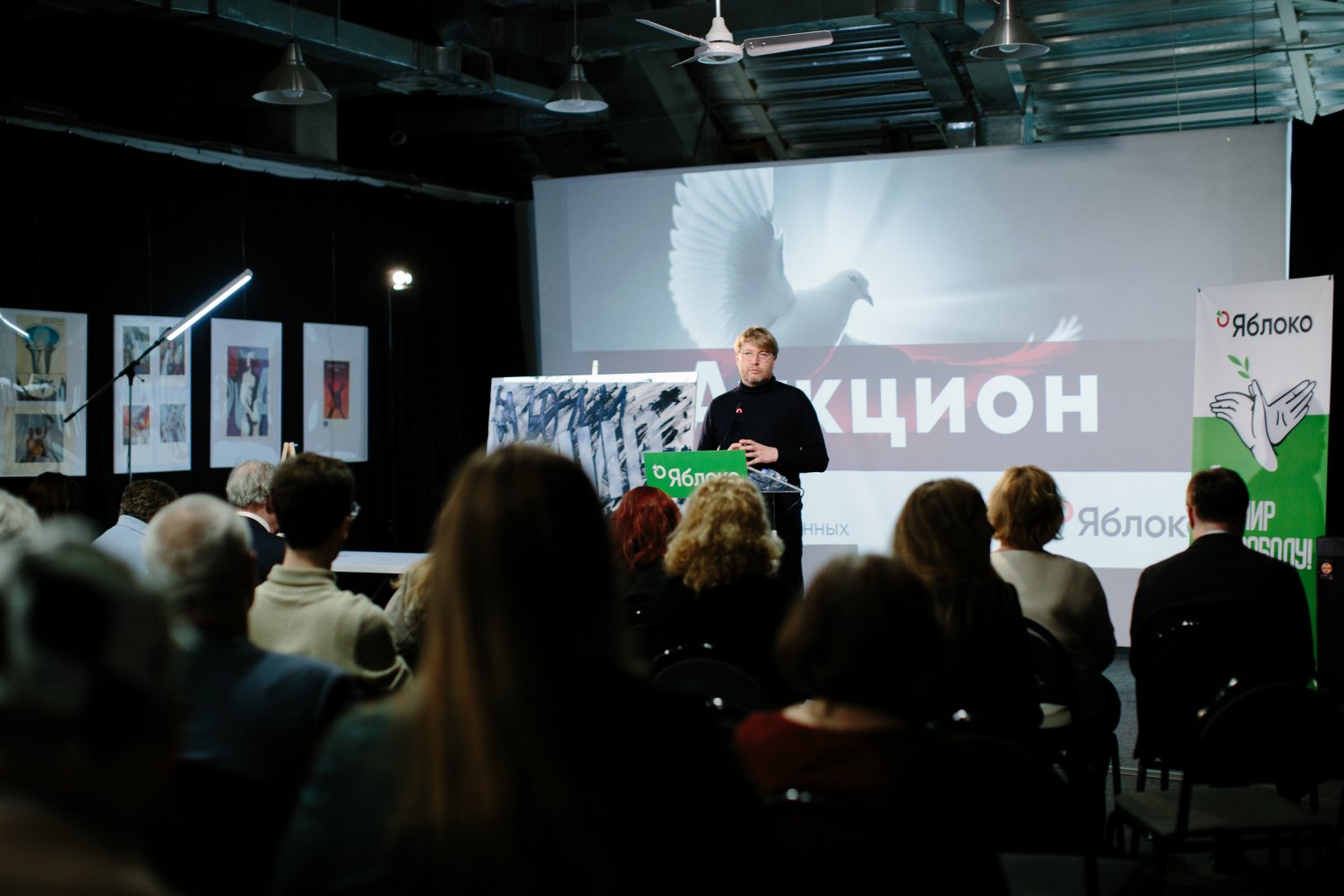 Открывая Аукцион, зампред московского отделения «Яблока» Кирилл Гончаров отметил – в России сегодня более тысячи политзеков, большинство из которых осуждены за «фейки» и «дискредитацию армии»: