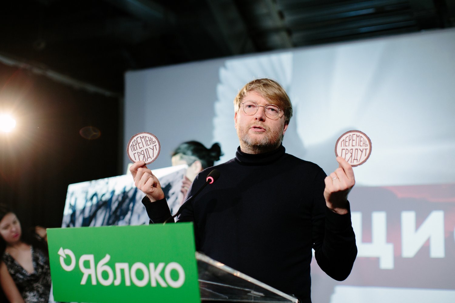 Руслан Гринберг на седьмом Аукционе «Яблока». Фото: пресс-служба партии