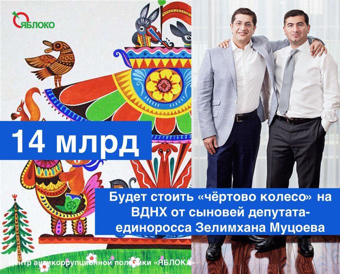 По данным Центра антикоррупционной политики (ЦАП) “ЯБЛОКА”, за проектом нового колеса обозрения на ВДНХ стоит группа компаний “Регионы”, принадлежащая сыновьям миллиардера, депутата Госдумы VI созыва от “Единой России” Зелимхана Муцоева. Член Федерального Политкомитета, руководитель ЦАП “ЯБЛОКА” Сергей Митрохин считает, что московские власти проводят передел бизнеса на ВДНХ в интересах клана Муцоевых.