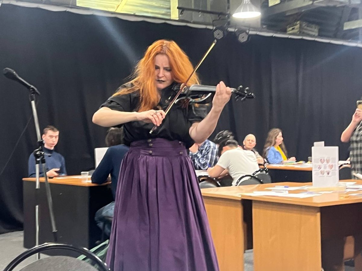 Всех участников вечера поддержала Анна Данеб – «Стальная Скрипка». Анна не только виртуозно играла на скрипке и пела – каждый номер был историей, дарящей самые разные эмоции – от драматического, даже трагедийного накала, до человеческой весенней нежности.