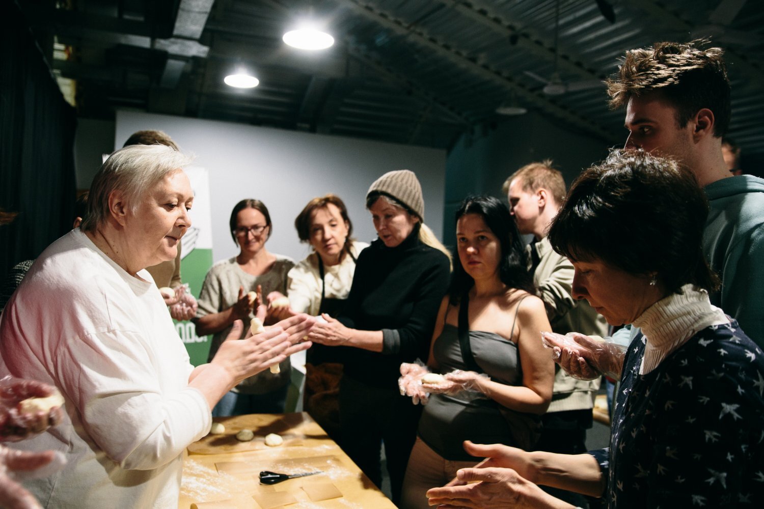 Беседа с исследовательницей истории русской кухни плавно перетекла в мастер-класс, где каждый гость своими руками испёк трогательную пухлую птичку по традиционному русскому рецепту.