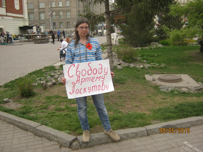 Активисты Новосибирского «ЯБЛОКА» Евгений Акиньшин, Светлана Каверзина, а также участница монстрации Татьяна Крутихина продолжают пикеты с требованием освободить арестованного на 10 суток художника Артема Лоскутова.