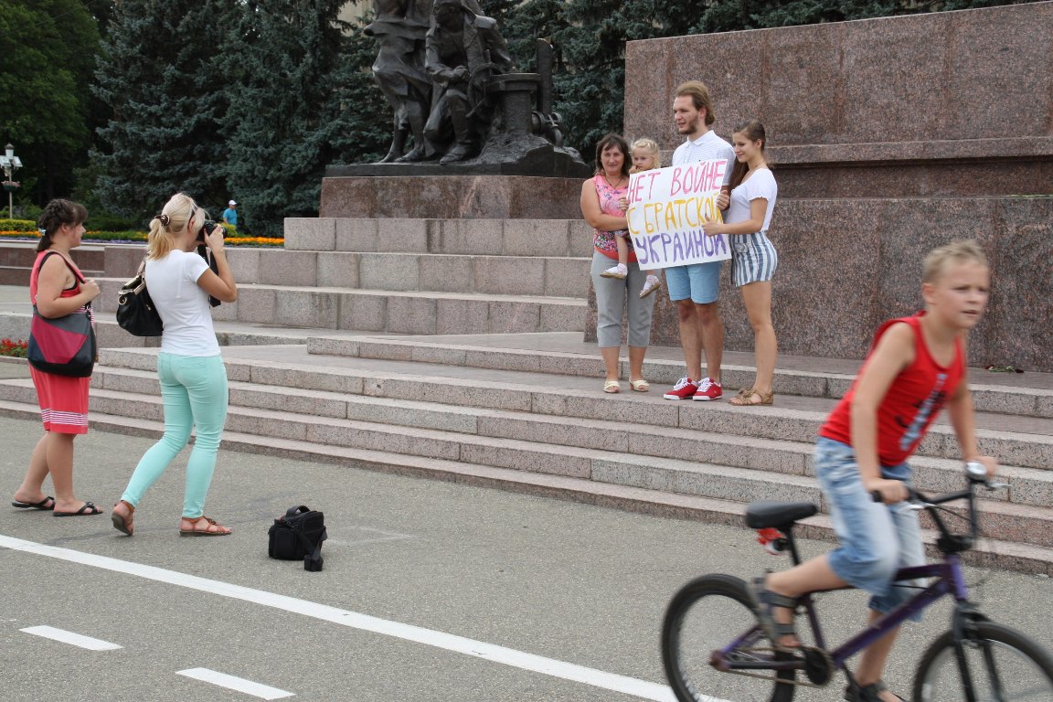Кирилл Бобро держал в руках плакат: «Нет войне с братской Украиной». По его словам, пикет прошел спокойно. «Только полицейские попросили написать объяснительную, а потом пожелали удачи, и я продолжил», – рассказал он.