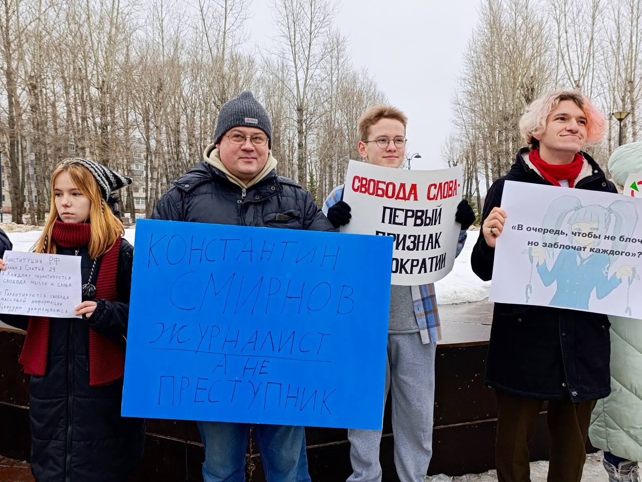 Плакат, с которым Руслан Зинатуллин 1 февраля 2025 года вышел в парк имени Карима Тинчурина в Казани, гласил: «Константин Смирнов – журналист, а не преступник». Таким образом Зинатуллин публично поддержал коллегу – лидера «Яблока» в Рязани и главного редактора регионального СМИ «Рязань. Вид сбоку» Константина Смирнова, арестованного по сфабрикованному обвинению в вымогательстве. Константин до сих пор содержится в СИЗО, его преследуют за активную борьбу с муниципальной реформой в регионе. Подробнее о его деле можно прочитать здесь.