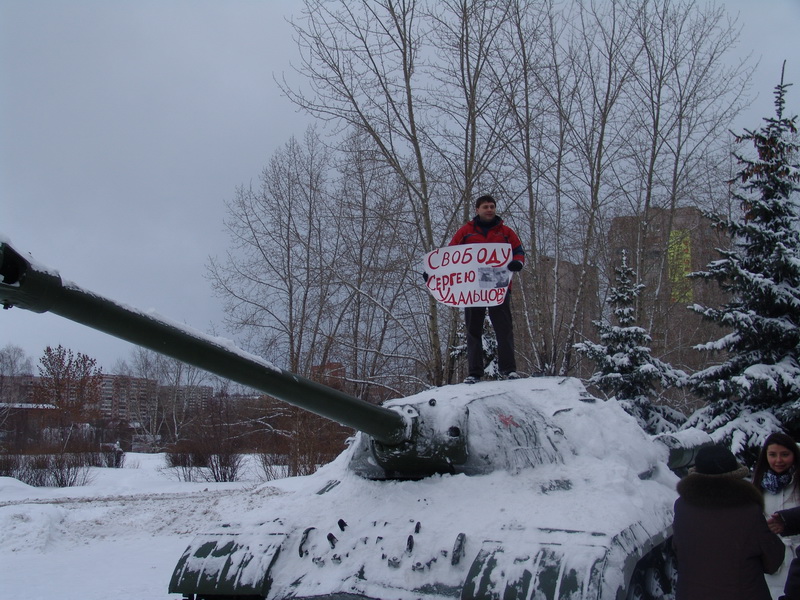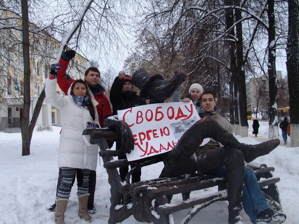 Напомним, лидер Молодежного «ЯБЛОКА» Удмуртии Софья Русова, заместитель главного редактора газеты «День» в Ижевске Андрей Коновал и два активиста движения «Левый фронт» провели сегодня на площади перед Дворцом пионеров в Ижевске с серию одиночных пикетов в поддержку политзаключенных. Что бы не нарушать закон, участники акции по очереди вставали на площади с плакатами «Свободу Сергею Удальцову!», «Нет политическим репрессиям!» и «Свободу политзаключенным!».