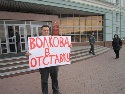 27 сентября около Дома Правительства Удмуртии прошла серия одиночных пикетов за досрочную отставку президента республики Александра Волкова.