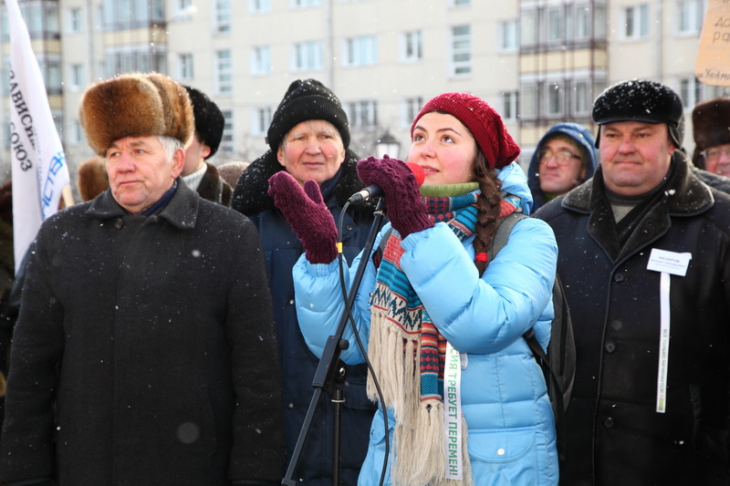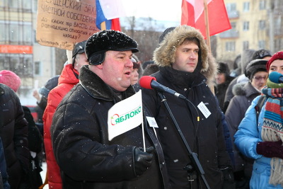 На митинге выступил лидер Удмуртского «ЯБЛОКА» Михаил Назаров и председатель ижевского отделения партии Софья Русова.