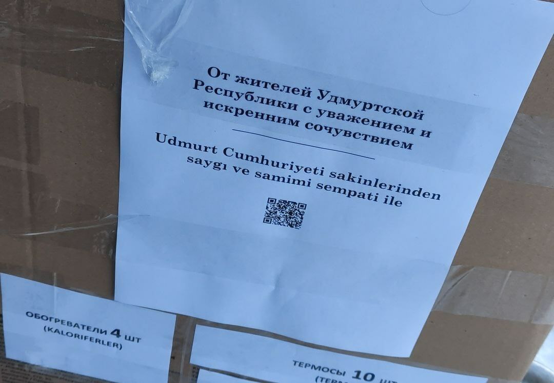 На всех коробках с гуманитарной помощью нанесена надпись со словами поддержки на русском и турецком языках: «От жителей Удмуртской Республики с уважением и искренним сочувствием».